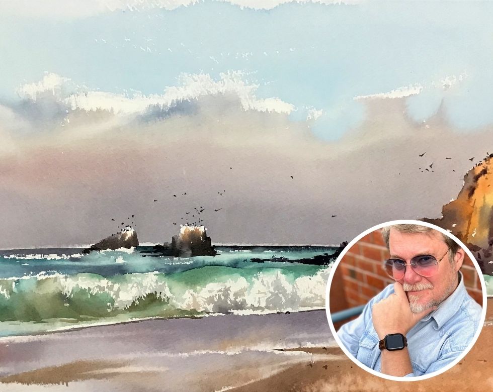 SEASCAPE AND WAVES IN WATERCOLOR