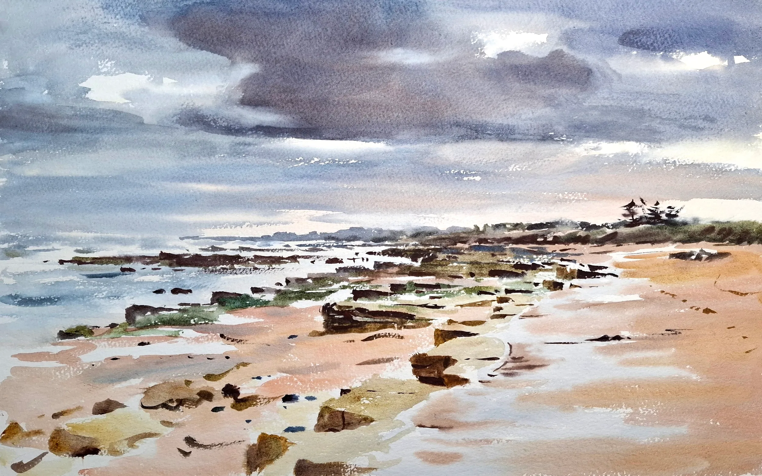 Aimed mostly at aspiring or intermediate level watercolorists, having some previous experience of the medium and wanting to stretch themselves. More advanced painters looking for a fresh approach may also get a lot from the workshop. Absolute beginners whilst welcome would find aspects very challenging and potentially offputting. It tends to be that they either have some luck or don’t, resulting in whether or not they see the potential in the method.